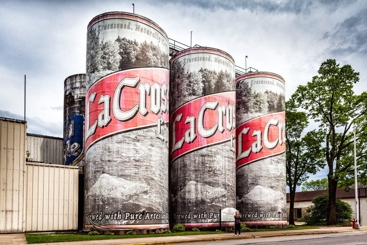 Kaum haben wir die Brücke nach La Crosse überquert, befinden wir uns auch schon in Bundesstaat Nummer 10, Wisconsin. Eine, der im wahrsten Sinne des Wortes größten Attraktionen dort, ist das weltgrößte Six-Pack. In den sechs Biersilos ist genug Bier um 7.340.796 Dosen zu füllen und ein Mensch könnte täglich ein Six-Pack über 3351 Tage trinken. Na dann Prost!